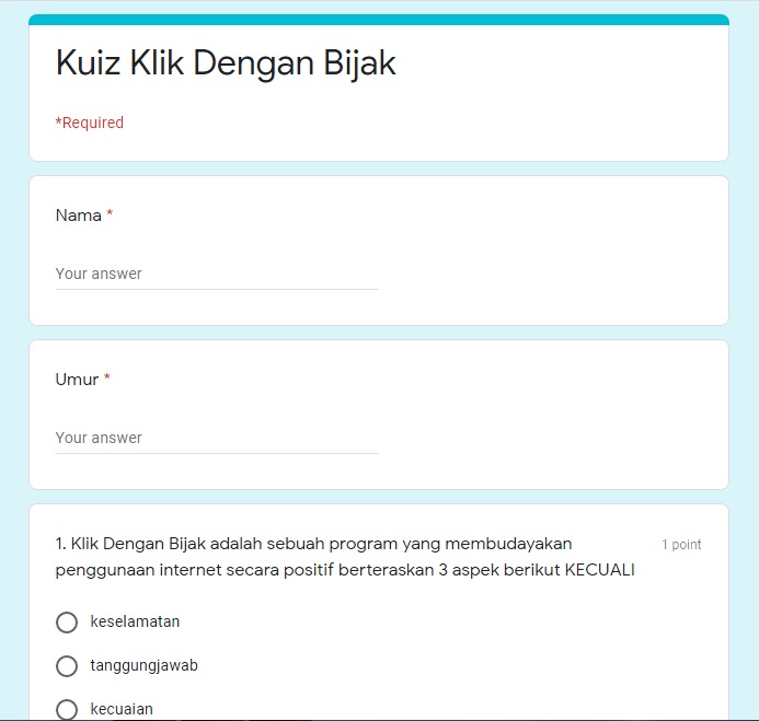 PERTANDINGAN KUIZ KLIK DENGAN BIJAK ATAS TALIAN