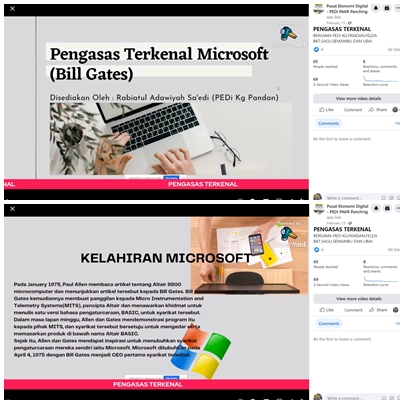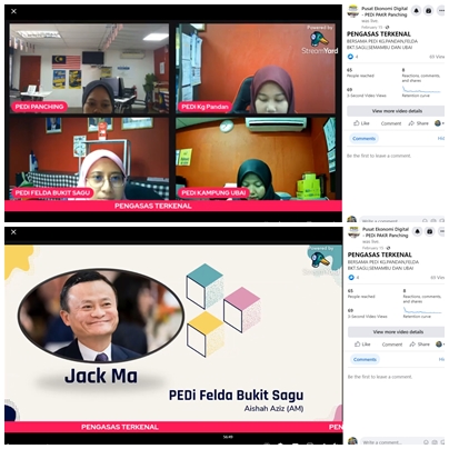 • Perkongsian ini disiarkan secara langsung melalui “Facebook Page” PEDi PAKR Panching dan berkolabrasi bersama dengan PEDi Kg. Pandan, PEDi Kg. Ubai, dan PEDi Felda Bukit Sagu berkenaan Pengasas Terkenal yang boleh dipelajari dan memberi sedikit motivasi kepada masyarakat.